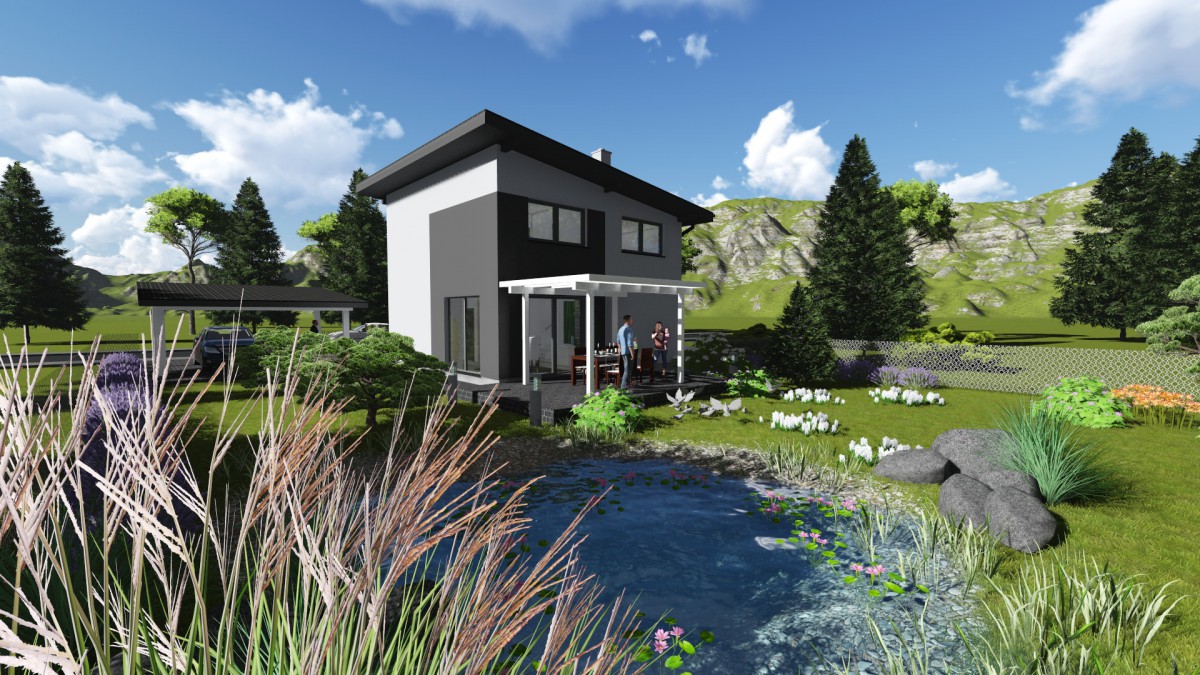 Ďalší typ moderného poschodového domu , ktorý je zastrešený pultovou strechou.