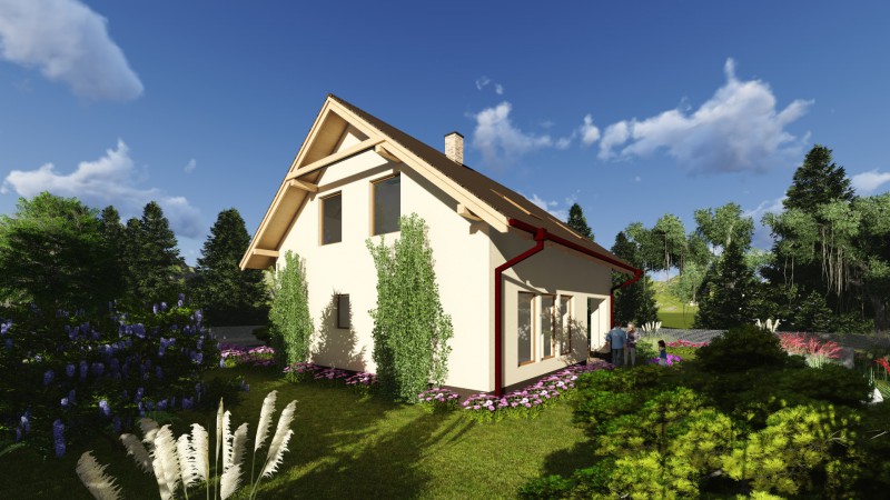 Jedná sa o projekt priestranného 3.izbového podkrovného domu , ktorý je zastrešený sedlovou strechou.